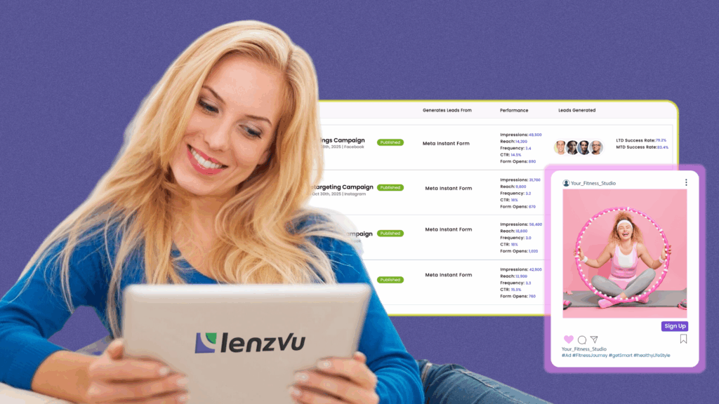 Running ads and campaigns shouldn’t feel complicated. LenzVU puts your marketing tools in one place so you can: